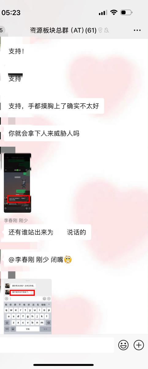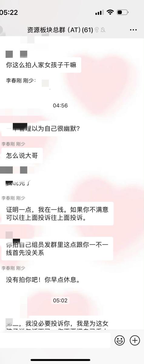 5.性骚扰部门女孩 其他女孩为其说话 李纯刚对发言的所有女孩发出威胁信息