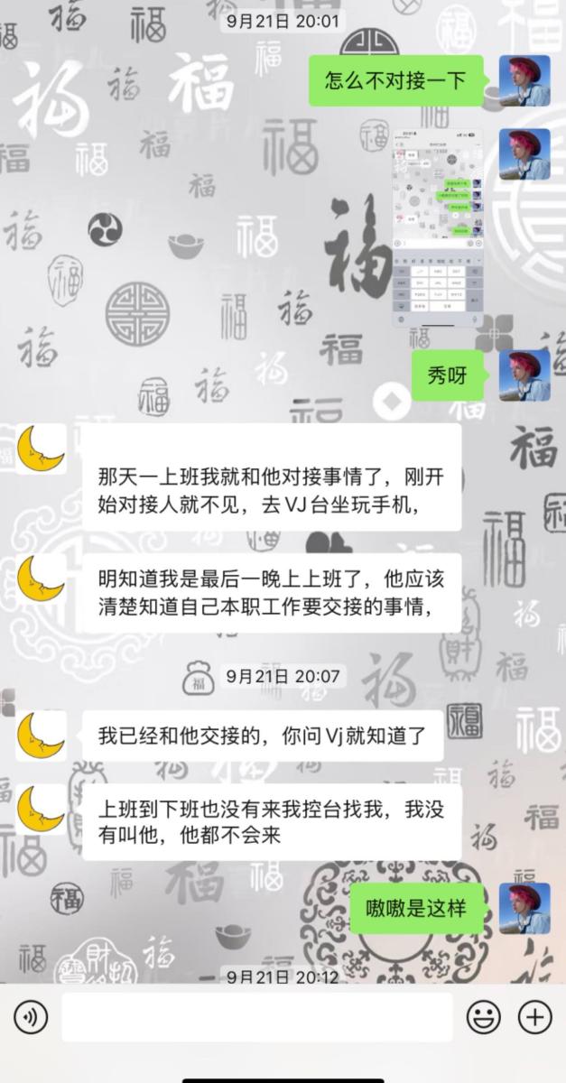 最后我承认我脾气有点不太好,但是除了排练那天其他时候从来没有骂他辱骂过他,都是就事论事,在事情发生后,有人也联系我说他想偷偷删程序但是他不会删,最后几张截图是他在他师傅朋友的场子上班,总监以及老板的发言,至于他的黑料我就懒得爆了,只澄清