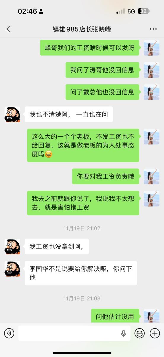 云南省昭通市镇雄县985CLUB,特大黑厂,老板欠舞台部4万多没给,欠我个人工资就9600没发。发微信不回,打电话不接。酒吧还在营业,夜场同行兄弟姐妹擦亮眼睛,不要上当受骗,我已经找律师准备起诉。