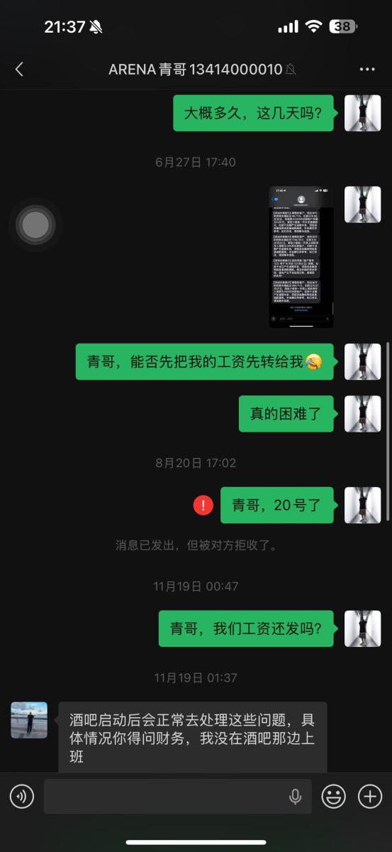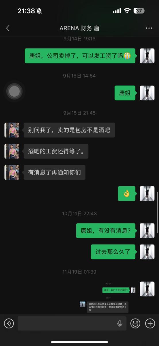 深圳罗湖黑场,黑心潮汕老板杨显铭,工资一拖再拖。老板说不怕仲裁,有本事就去。原罗湖Arena(乐巢)现在出售股份给旁边苏荷酒吧,等于现在被收购了,但是自己还留了一点股份改名《时光剧场》,旁边的KTV也是同一个老板杨显铭有股份的。一个老板,工资一拖再拖迟迟不发,出售了股份,也不愿意把钱还给我们这些拿命熬夜赚的血汗钱,天理难容啊!图片上最后一张是杨显铭
