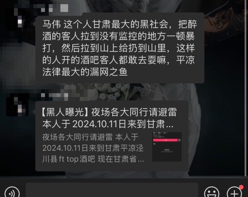 置顶 【黑人曝光】夜场各大同行请避雷 本人于2024.10.11日来到甘肃平凉泾川县ft top酒吧 现在甘肃省平凉...