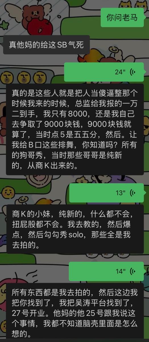 夜场各大同行请避雷 平凉新场007未来娱乐空间老板马某 当时定的是2025年11月11号开业 把第一批舞台部找过来 不给人家半薪 以各种理由下掉人家让人家走 后面又让我找人 我连夜把人给找到 17号18号第二批舞台部到了 说半薪 也是拖到了22号才给人开始发半薪 后面因为店方的一些原因迟迟开不了业 其中很多人都走了 然后暂定是27号开业 ‼️重要的来了 25号晚上告知我 让我先不用去公司 我没多想 后面26号也没人说 我越想越不对 我就去问 结果马某来了一句 我本人先暂时不属于舞台编制内 我只能说666 我忙前忙后去帮你找人 人找到了当天你可以给我说 现在开业前天晚上让人不去 现在翻脸不认人说没有让我找过舞台部 让我去跟店长沟通一系列的事 反正就是人品有问题 同行各大总监老板避雷‼️‼️直接就是把人当日本人整