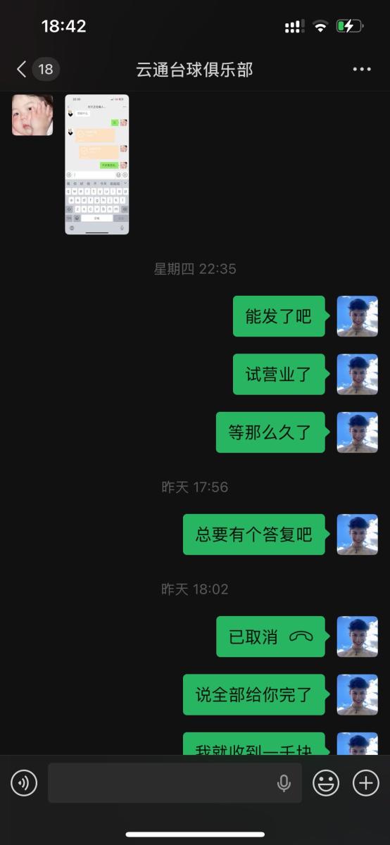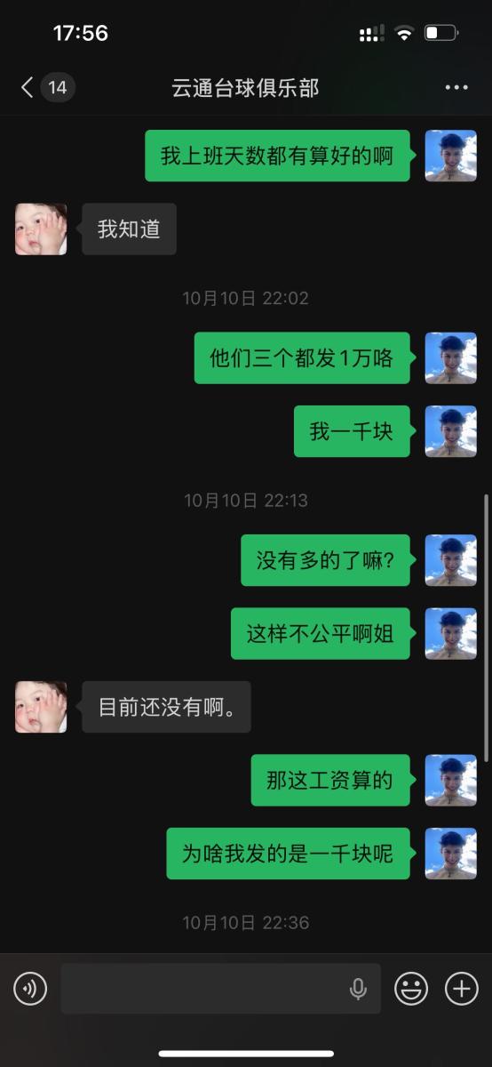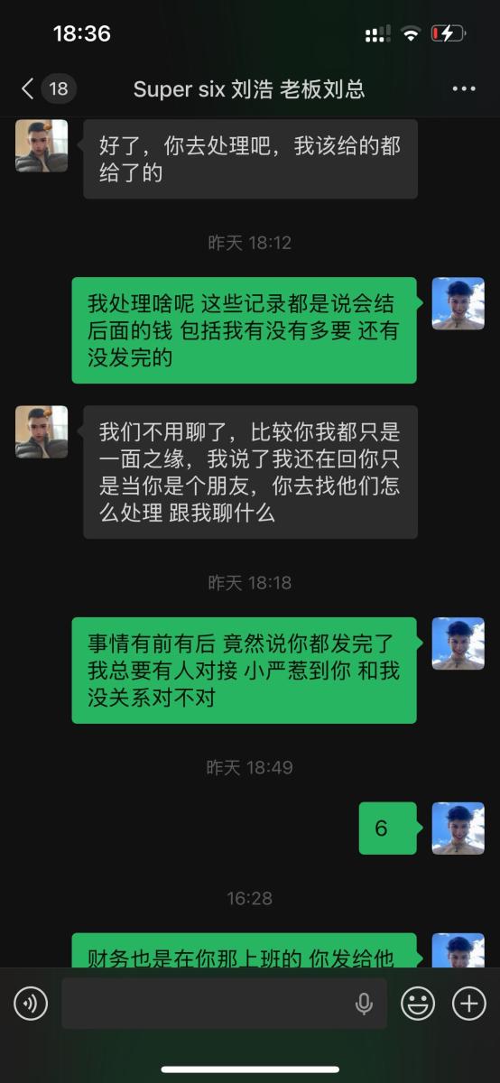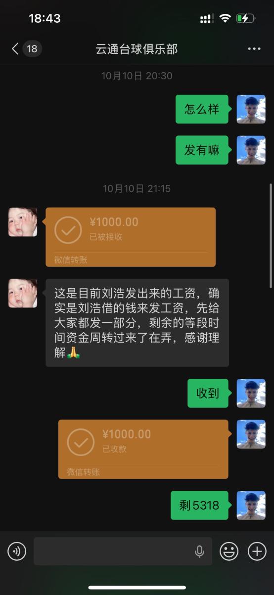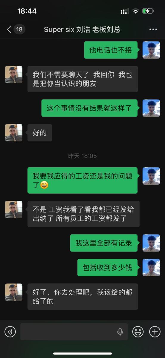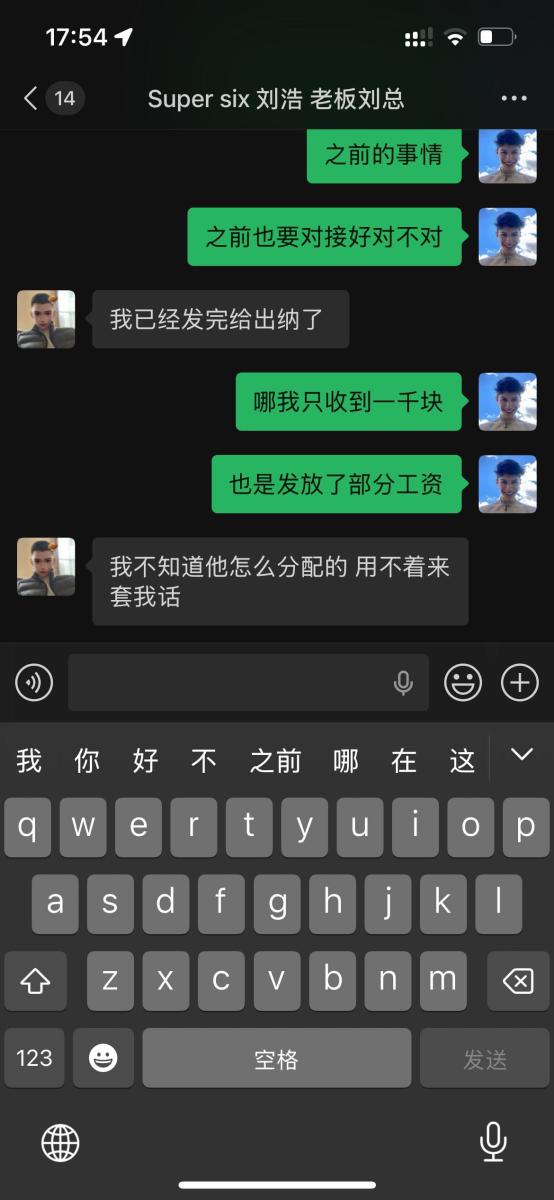 《重庆云阳特大黑场 黑人老板》 天地良心 人心隔肚皮,本人经朋友介绍被叫去重庆云阳s6帮忙 价位1万 8.8日到达 8.9号上班 宿舍惨烈 无奈只得自己租房刚下飞机就拿出来两千块大洋 心凉了一半 无奈对于认识多年好友之信任 说给报销300 这300可是太难给我了 前期正常上班 正常工作 生意时好时坏 公司管理层混乱 员工都是老板手下兄弟 上到第半个月20天左右 舞台同事问我发工资没有我说没有 我说认识的应该拖一天两天没事反正过来帮忙 好家伙😅不问不知道一问吓一跳 舞台部除了我每个人都是有一个多月没发工资了 给我整的直接去问老板(刘浩)什么时候发工资 给我来一句谁没有钱了给预支就好了 哪我心想当前困难能预个一期也好没事 结果一直问天天没有钱 8.9号上班9.3号收到1000块钱预支真的太难了兄弟们 房租一个月一千块 水电费500最少 上下班路远一来一回20块钱这一千块和施舍一样 我过去也不知道花了多少了 两个人的飞机票 租房 打车 更加心寒的是 到9.5号直接说让我休息 好休息了 然后我说休息哪就是下课了 给我结工资就行 他说没有 你说搞笑不 后面因为赚不到钱 拿不到钱 因为人都是需要生活 不可能一棵树吊死 坚持不下去只能走了 走了差不多20天 停业了 10.10号给舞台和全部公司的人发了部分工资 可笑的是我们就收到一千块 对的你没有听错 你没有看错整整1000块!!这是什么概念 含金量极佳啊 一千块我房都租不到 过去帮忙良心喂狗 停业整顿期间我也一直问工作 一直说没有钱 后续听到10.27号开业 当天去问工资 然后就开始踢皮球 说给我们都发完了 当然记录显示发放部分工资来到10.28在问他要工资就说给财务了 财务发朋友圈 不回信息 打电话不接 装看不见 我也不爱骂人 这种人就纯恶心 新过去的舞台兄弟们估计也是要唉黑了重庆云阳县s6酒吧 现已改名s6江南 老板名刘浩 聊天记录太多了 对朋友掏心掏肺 我只问工资事情 其他不管公司名称:云阳县友浩酒吧俱乐部(个体工商户)