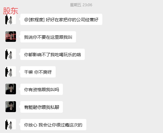 其股东还在工作群声张 ”无论你们如何闹 也影响不了我吃喝玩乐!“