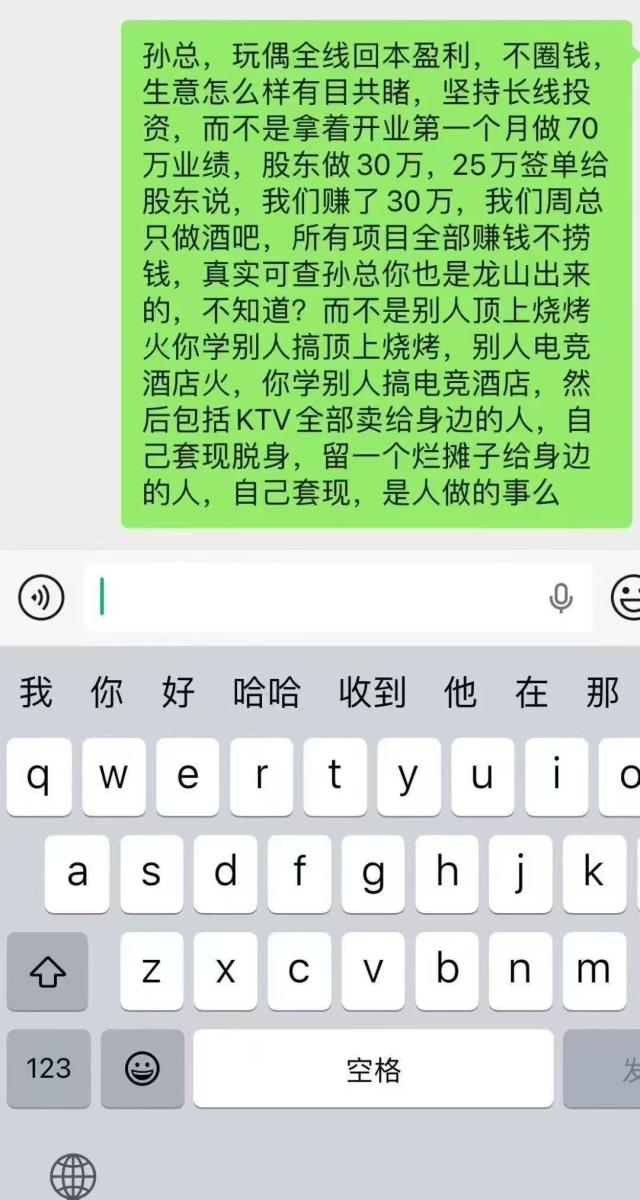 每期托工资一个星期起步,干了快两个月没有发过一次完整的工资 ,没有业绩,一个星期要a,我了两次,一共是1464(厚着脸皮要回来800,还有664没结清),(5个人a了两次3580的龙🐲除去提成)至今没给我结清,舞台部11点上班到凌晨5:00,甚至六7:00强制应酬,强制做业绩,业绩做不出来自己掏钱a,强制喝酒,喝纯的一大杯,甚至更多,一个月关门两天左右没有工资 去之前这些东西都不会说的,把人骗过去了再说,我已经辞职快三个月了,这个钱每次要都是没卖出去,也不知道是不想卖还是卖出去了,不愿意给钱,因为舞台部能做业绩,来了个本地女j,基本上天天可以有3000以上的业绩,每次就是找我,就是没有要到这个钱,去了这个店就等于受罪,根本不艺人人当人看累死累活还讨不到一句好话,就是因为每一期拖工资拖得太久,所以上班都不愿意收拾了,就被说丑,钱没有结清,所有群全部踢出群点歌一晚上少说30首,一分钱没拿到过这个都不说了,可以不要,但是这个a龙的钱是我的工资里面扣的三个月了就是没有一句准确的话