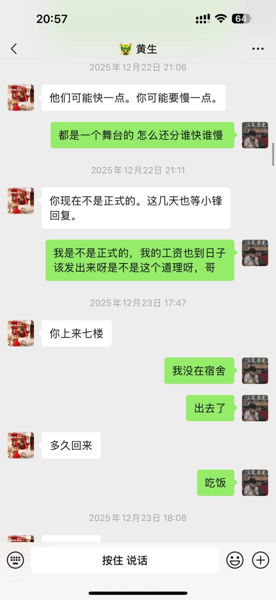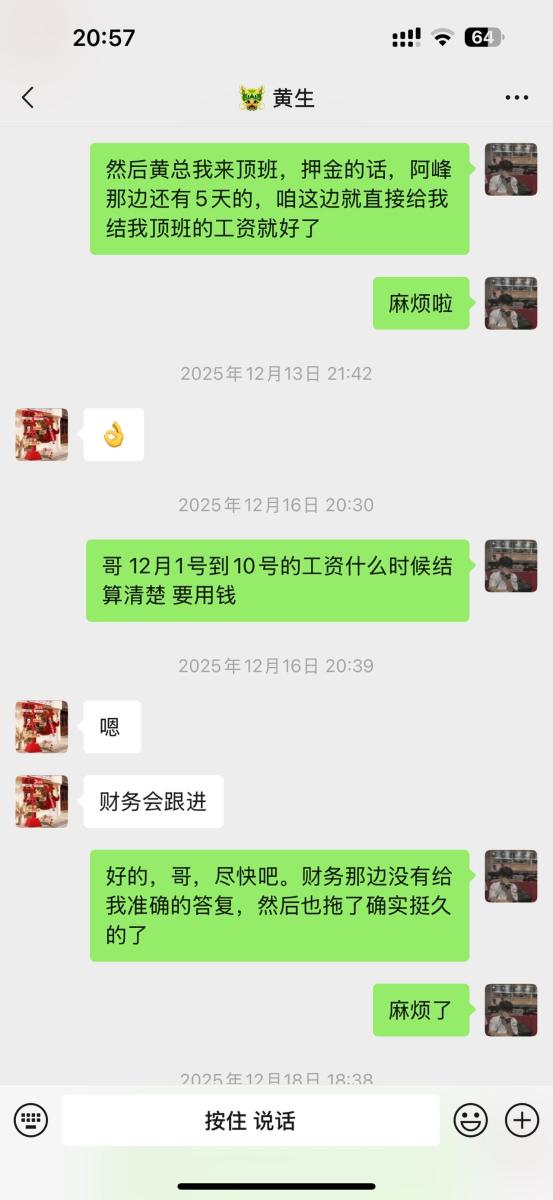 黑人老板一直以顶班的跟正式员工不一样为理由不发工资,直到本人一月一号离职 才知道要扣除宿舍费用以及水电费 180块钱一天的住宿