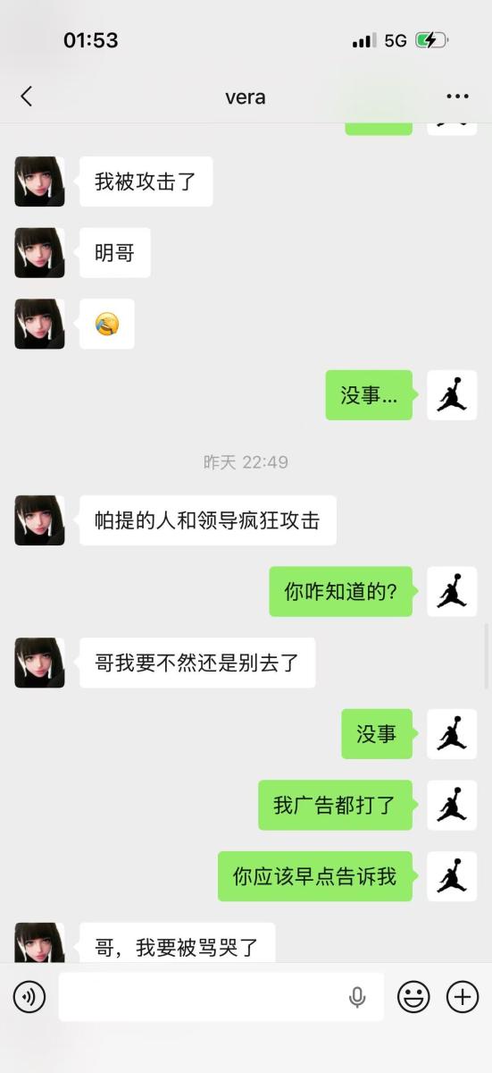 本次事件的主人公女 DJ,恶心店代表帕蒂浩斯,两方没有任何职业道德,恶心至极,放纵员工恶意辱骂,女 DJ 更是墙头草,谁骂你你去谁那,天生贱嘛?