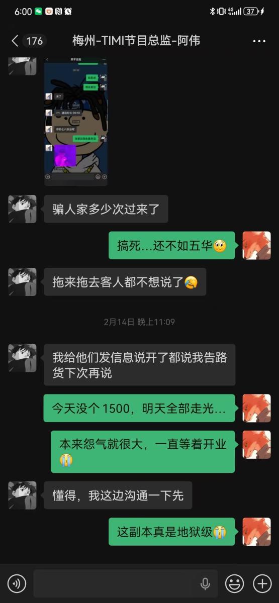 还有酒店给舞台部刚去开的房间费用还欠别人酒店380不给,我把这个费用发到管理群直接选着看不到消息搞笑不😃其他就不想说了02-16