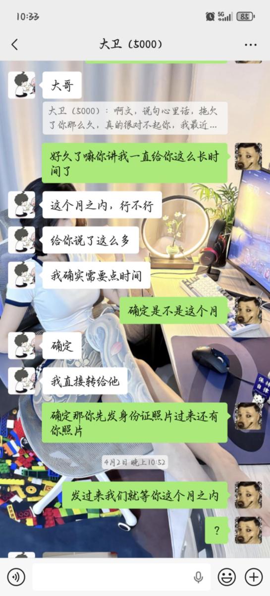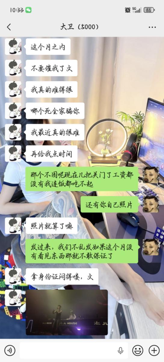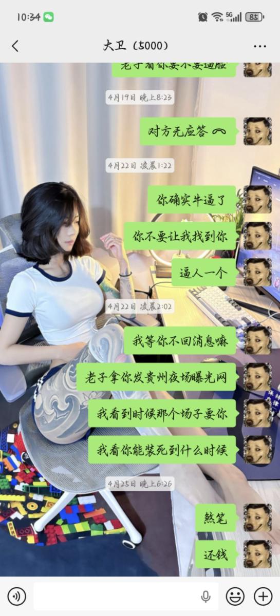 此人原名叫(何定欣)家住织金县珠藏镇青山村羊场脚组,艺名MC(大卫)此人在2025年8月份找我借了3500元到现在才还了500元之前在贵州铜仁松桃县JL酒吧当MC之前找我拿钱的时候说好的两个月之内全部还清到现在了一直没有还之前我联系他还钱每一次都找不一样的借口我也给了他很长的时间到现在发消息不回打电话不接直接装死之前他找我借钱的时候差点跪在地上求我,我看着他可怜才借给他想不到他本人不讲信用之前我听我同事他们说他在松桃欠了很多人的钱一直没有还4月12日还能联系到他本人现在发消息不回打电话不接,希望各位做夜场的同事们如果擦亮你们的眼睛这种人不应该值得同情,人品极差到处欠钱还满嘴跑火车骗完这个又去骗别人大家注意点他这个人如有人认识他在什么地方上班的请联系我必有红包(本人在松桃担任内保一职 一个月工资就靠天天喝酒 服务客人来的辛苦钱 都舍不得还简直不是人)